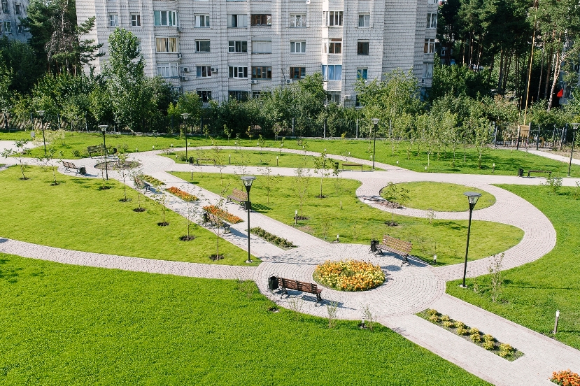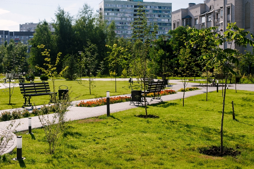 В парке красивые ухоженные зеленые газоны, кованые лавочки, дорожки и фонтанчики. Три источника в парке появились не случайно, прислушавшись к шепоту воды, Вы получите необходимые положительные эмоции, очистите мысли и чувства, что поможет надолго сохранить хорошее настроение.